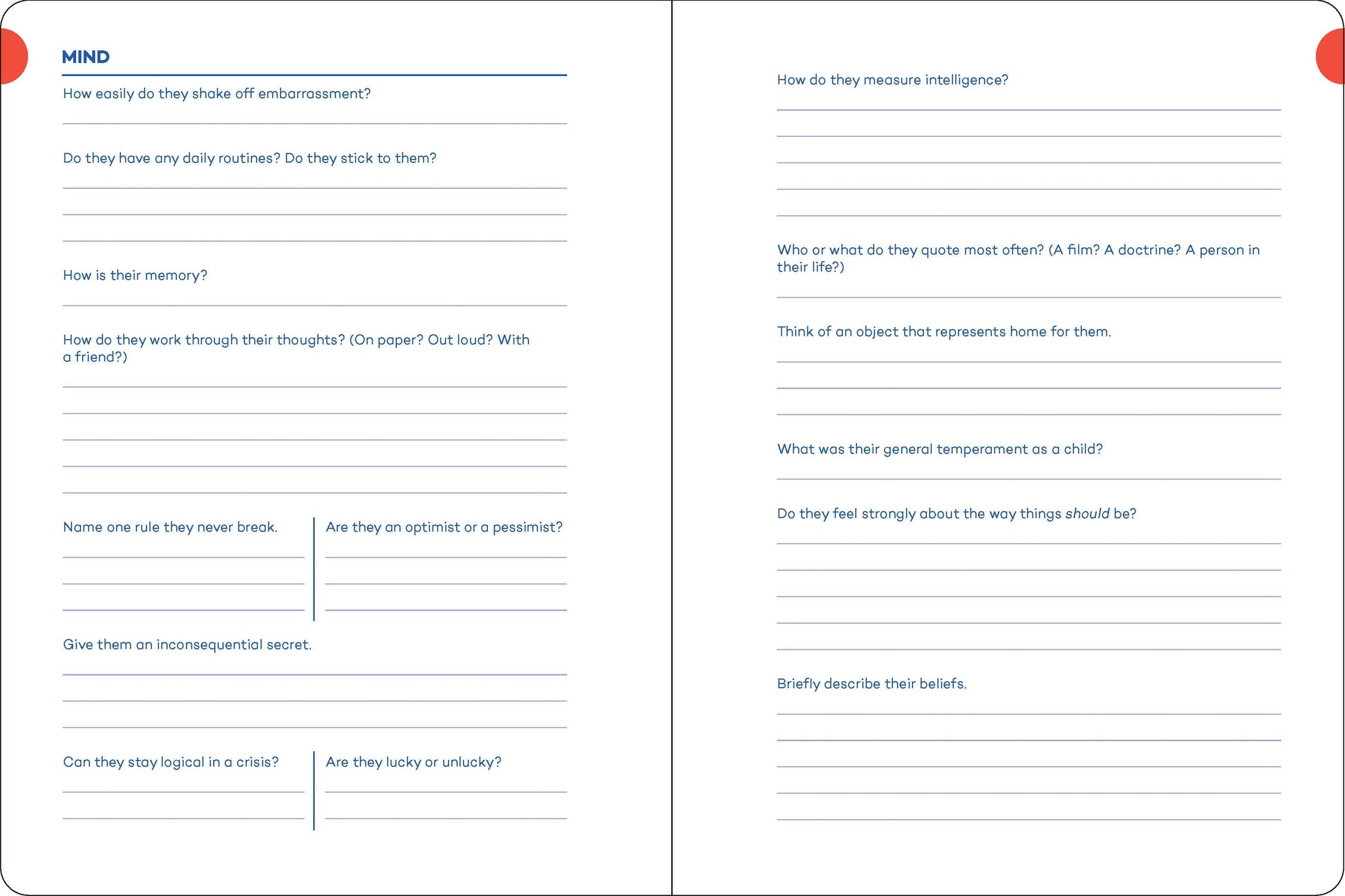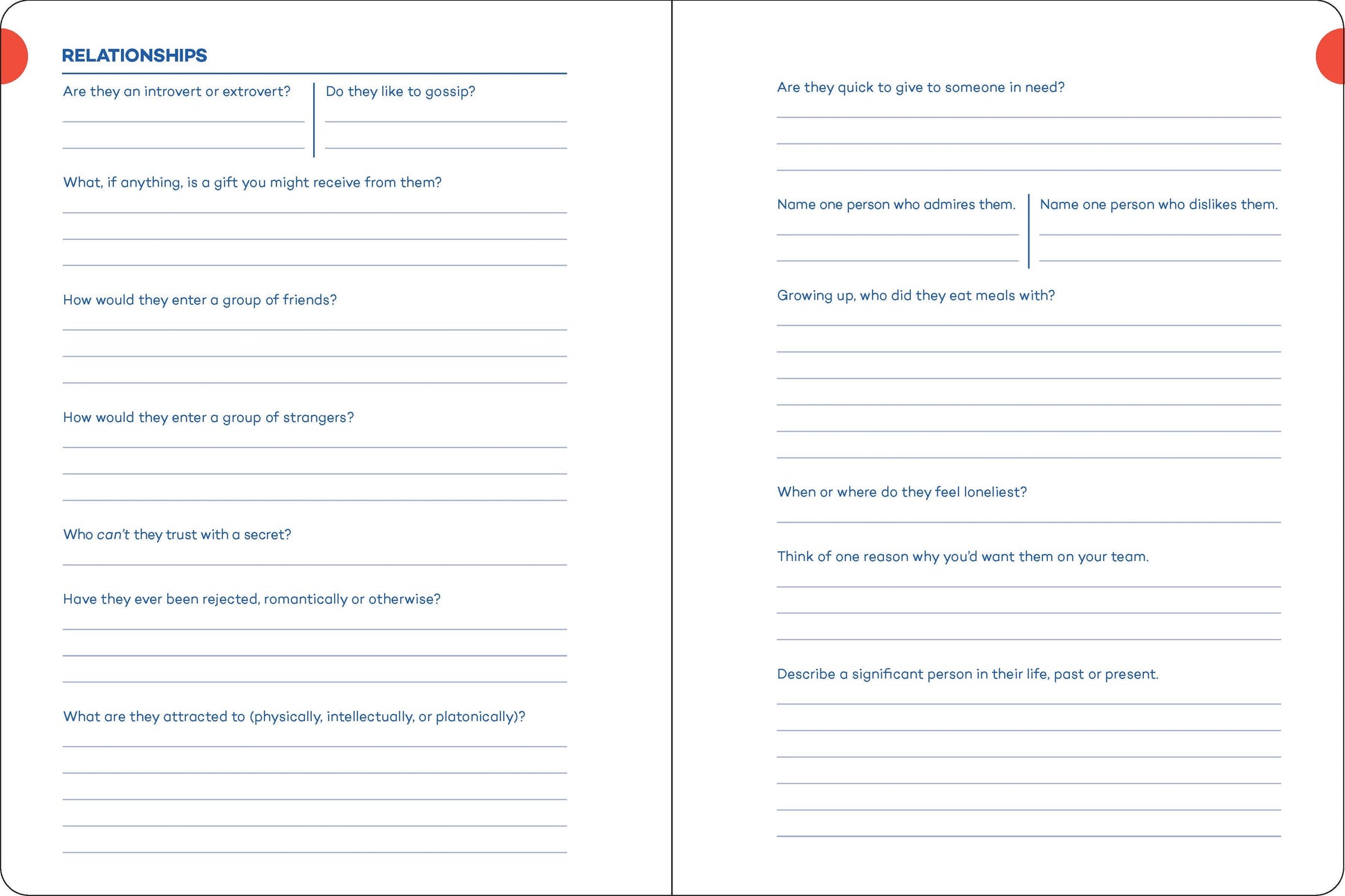 For all types of storytellers, this fun, easy-to-use writer's journal is designed to help you build complex characters from a series of simple questions, with room to brainstorm 15 unique characters.
