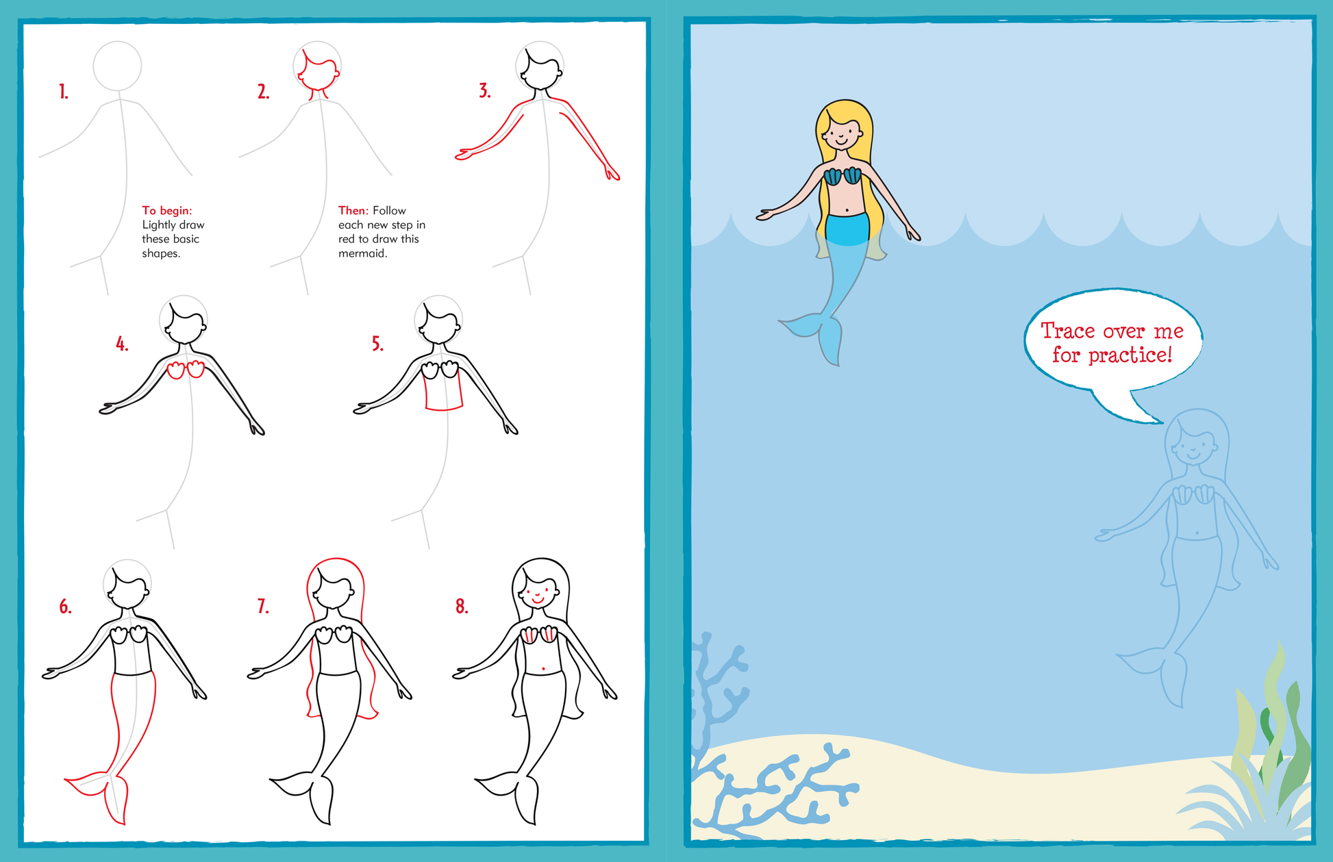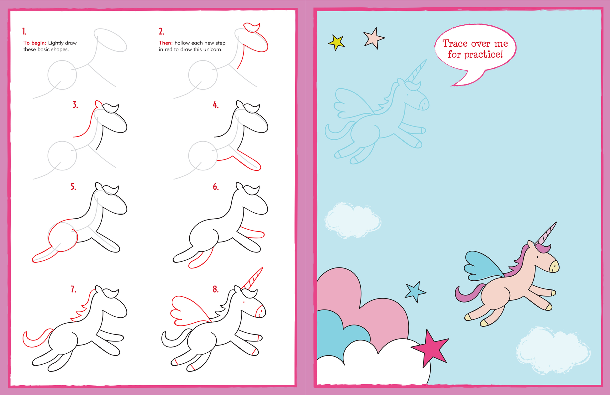 Are you ready to draw . . . all kinds of magical things? Unicorns, mermaids, dragons, princesses, and more? This book is for you! Young artists will learn to draw more than 35 magical creatures and people by following the simple step-by-step illustrations. What makes Learn to Draw books different? The red guiding lines in each step that make completing each drawing easy, satisfying, and fun! Extra outlines of each subject are also provided for young artists to trace, for practice and for building confidence. Kids can use their new artistic skills and imagination to draw their own pictures on the background pages provided throughout. Full-color drawing book. Thick, high-quality paper. Sturdy paperback binding. Ages 4 and up. Book measures 8-1/2'' wide x 11'' high. 48 pages.