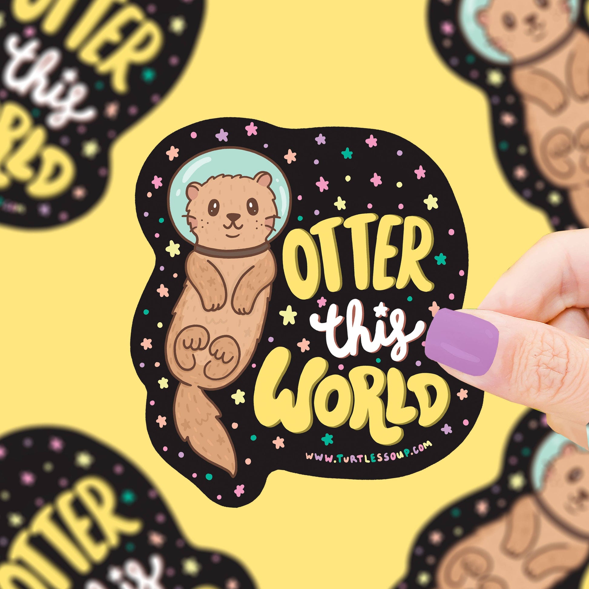 'Otter This World' vinyl sticker by Turtle's Soup. Stickers are approximately 3 inches by 3 inches. Our Turtley Awesome vinyl stickers are made from the highest quality ingredients on the market! Printed on thick, ultra durable vinyl, these stickers are made to last. They're UV-coated making them waterproof, weatherproof, and dishwasher safe! Copyright © 2021 Turtle's Soup. All Rights Reserved.