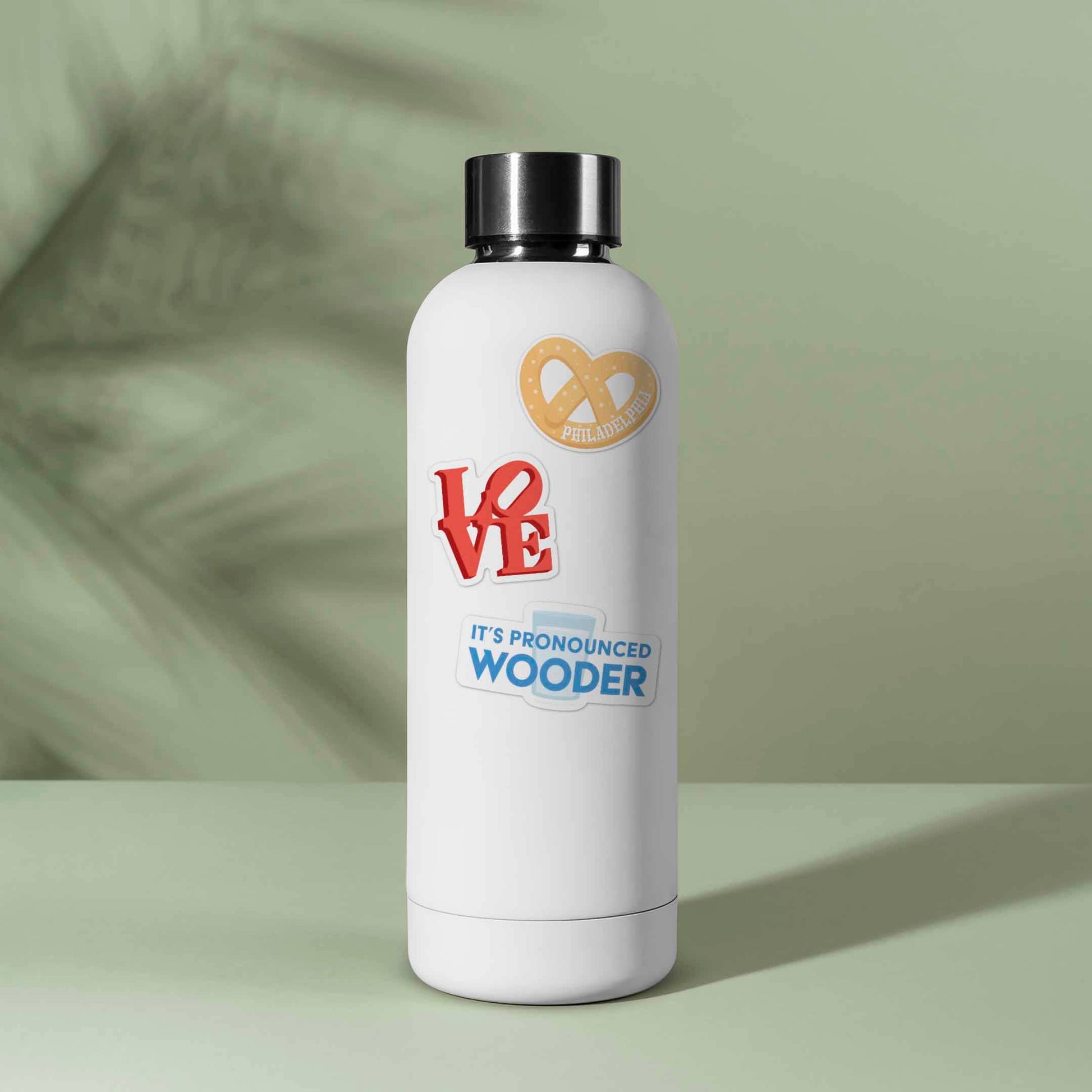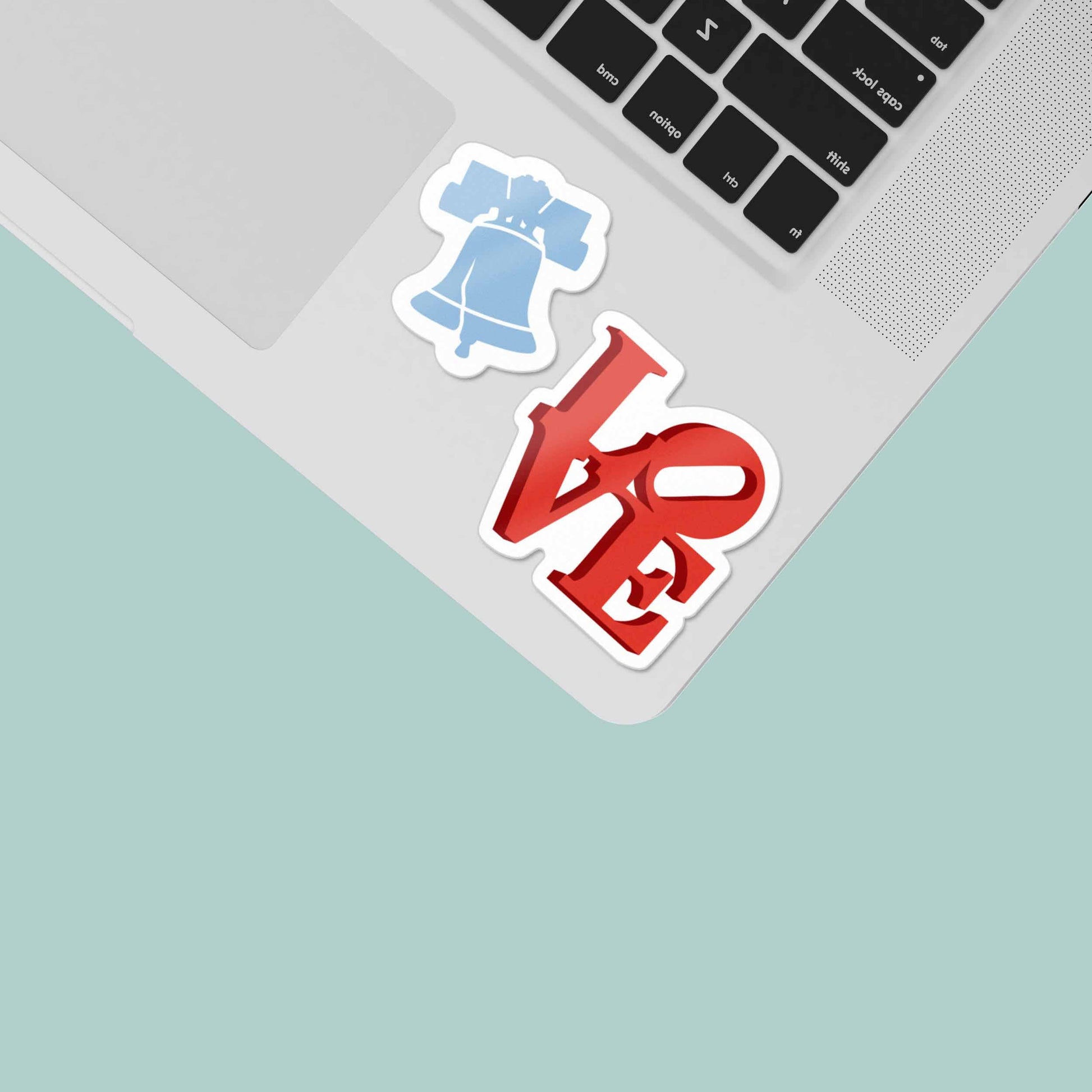 Philly sticker set of 6 mini laptop decals. Total dimensions: 5.25" wide x 4.1" high. Durable die-cut vinyl decal with a matte UV-resistant coating. Waterproof & weatherproof for indoor & outdoor use. Made in USA. Includes triangular hole for hanging display racks. Celebrate the City of Brotherly Love with a cool Philadelphia sticker pack! Features 6 mini versions of our Philly stickers in a red, white, and blue color palette: It's Pronounced Wooder - 2.2" W Philly Rocky Sticker - 2.6" W Love Sculpture - 1.5" W Liberty Bell - 1" H Soft Pretzel - 2.7" W Philadelphia Skyline - 5" W Great souvenir or gift for friends in Fairmount, South Philly, Center City, Fishtown, Delco, Montco, & South Jersey.