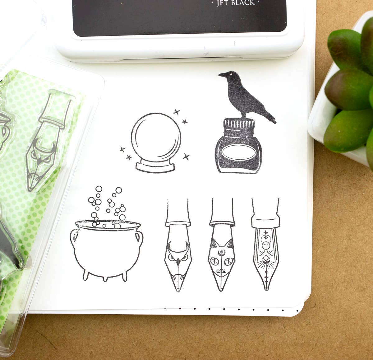 Our beloved Unfamiliars are now available as a family complete with a few new friends: Edgar the Inky Crow, a cauldron and a crystal ball. Enchant your ink swatching, journal or planner with this fantasy nibs, inks and accessories.